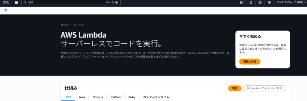 AWSはサーバーレスコンピューティングとして、コードで処理を実行できるサービス、AWS Lambdaを提供しています。AWS Lambdaを使用するには、Lambda関数と呼ばれるコードを使用してAWS Lambdaを使用します。
