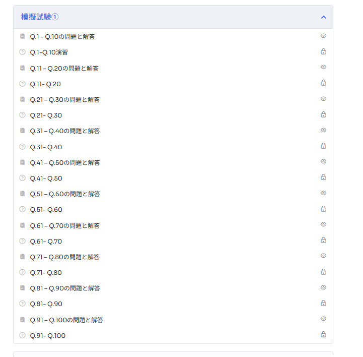 アカウントを登録していなくても一部の模擬問題と解答の解説を確認することができるようにしています。
