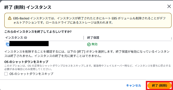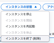 「インスタンスを終了(削除)」をクリックします。