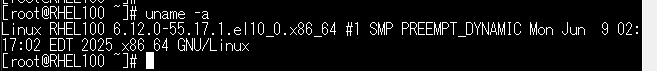 Linux RHEL100 6.12.0-55.17.1.el10_0.x86_64 #1 SMP PREEMPT_DYNAMIC Mon Jun 9 02:17:02 EDT 2025 x86_64 GNU/Linux