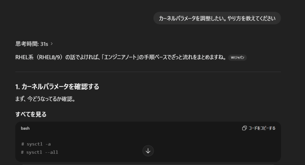 今回はカーネルパラメータについて確認してみます。