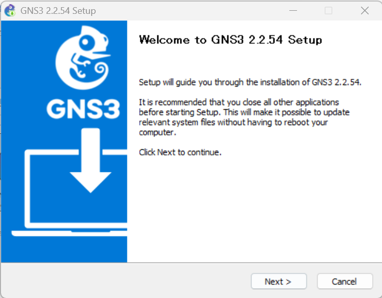 筆者の環境は、Windows 11なので、Windowsのインストーラを使用します。以下GNS3が公式に用意しているインストールガイドを参考にGNS3のインストールを進めていきます。