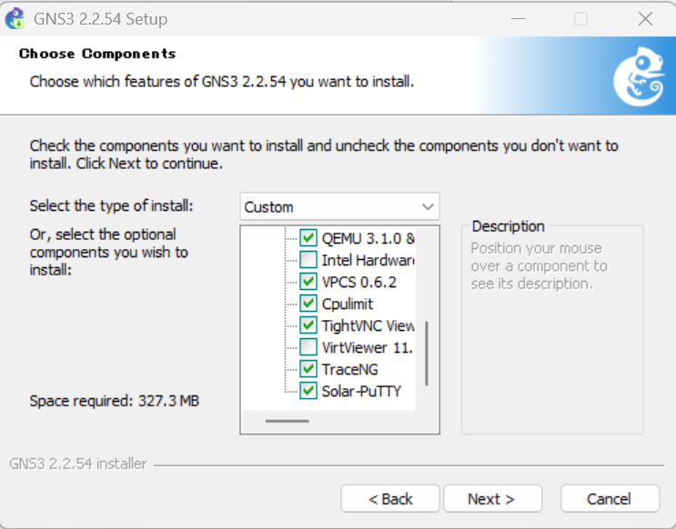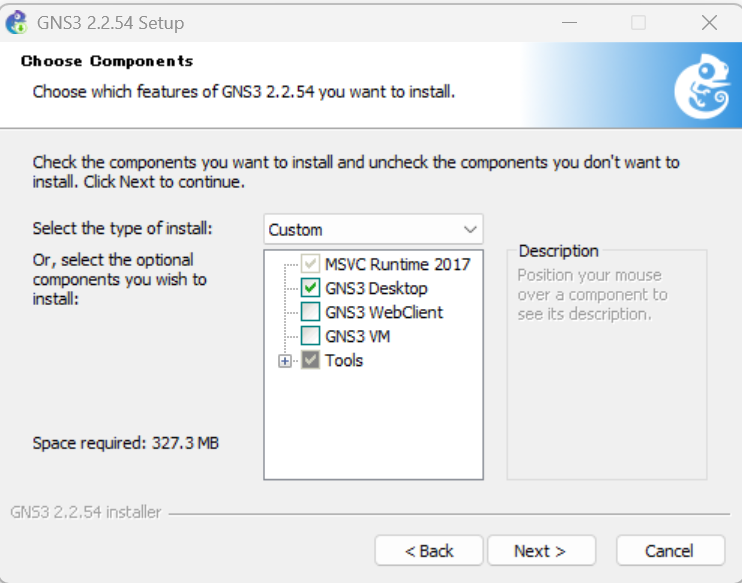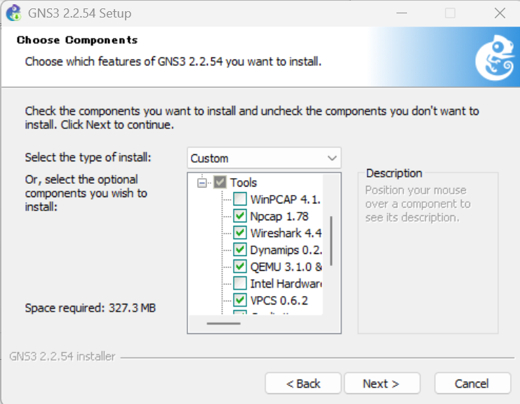 Toolsを展開するとGNS3ではなく、GNS3に関連するソフトであるWireshark(ワイヤーシャーク)などをインストールするにチェックが付きます。