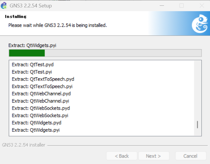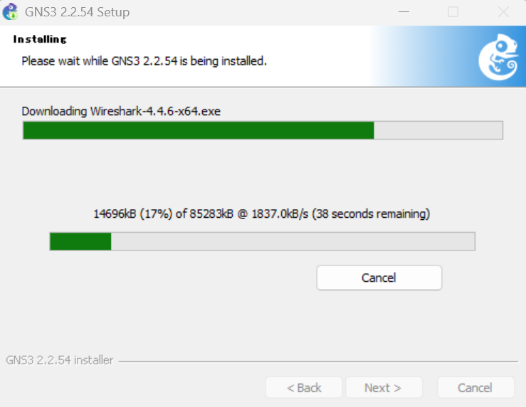 GNS3 2.2.54のインストールが完了すると、チェックをつけたツールのインストールが開始します。