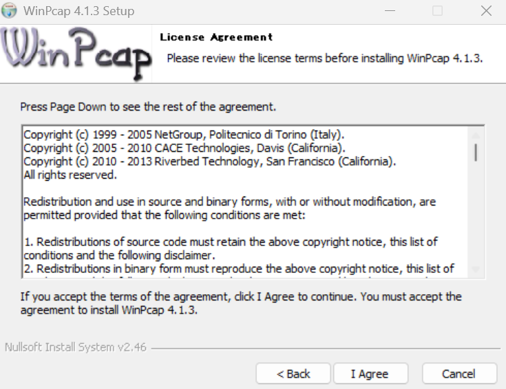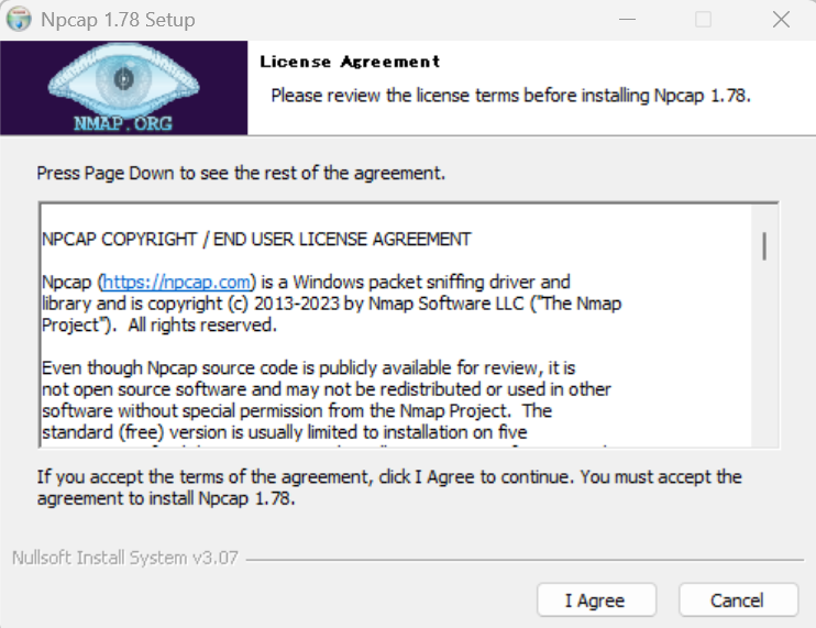Npcapをインストールします。