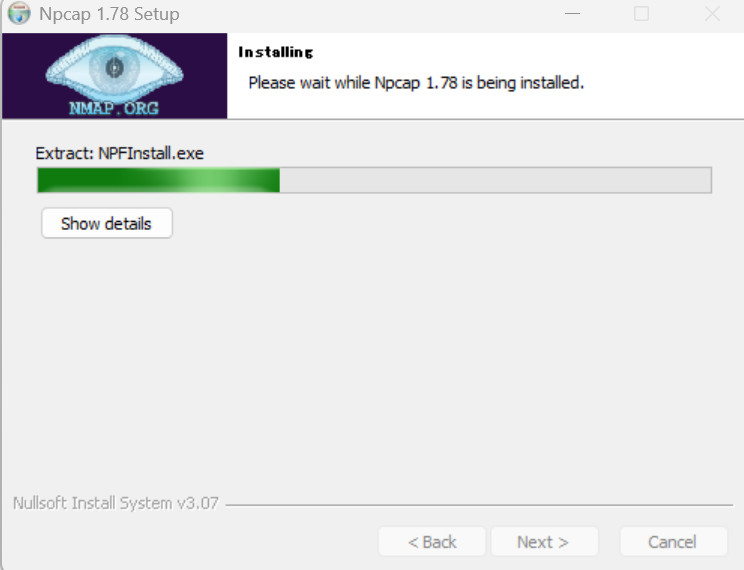 Npcapもインストール完了しました。引き続きWiresharkのインストールが始まります。