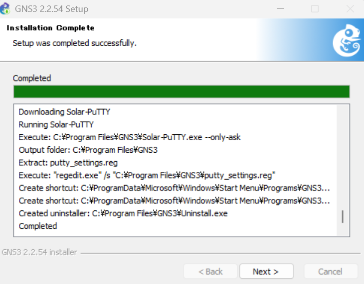 GNS3のインストールが完了