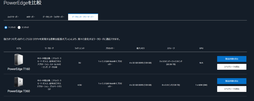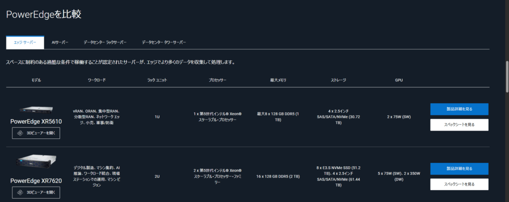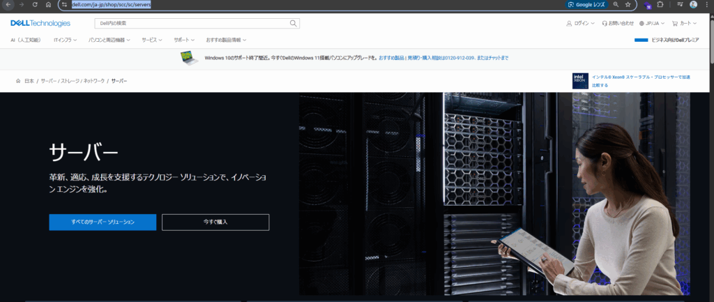 Dell公式サイトにアクセスすると、Dellのサーバーに関する情報が掲載されています。