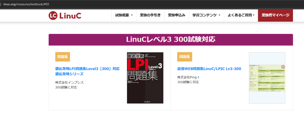 LinuCレベル3 300の学習に使用した教材を紹介します。