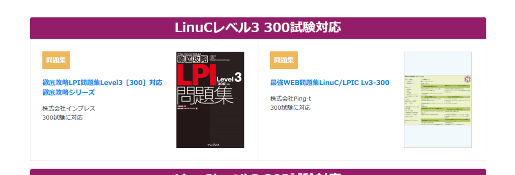 しかしながら、LinuCの公式サイトにはLinuCレベル3対策の認定教材としてLPICの黒本が紹介されていました。