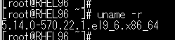 以下はRed Hat Enterprise Linux 9.6でのuname -rコマンドの実行例です。
