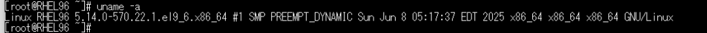 以下はRed Hat Enterprise Linux 9.6でのuname -aコマンドの実行例です。