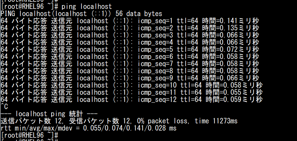 [root@RHEL96 ~]# ping localhost