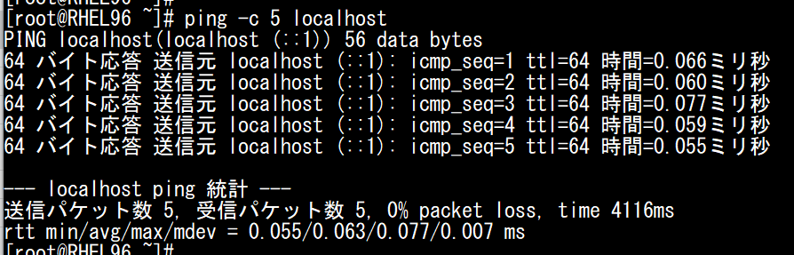 [root@RHEL96 ~]# ping -c 5 localhost