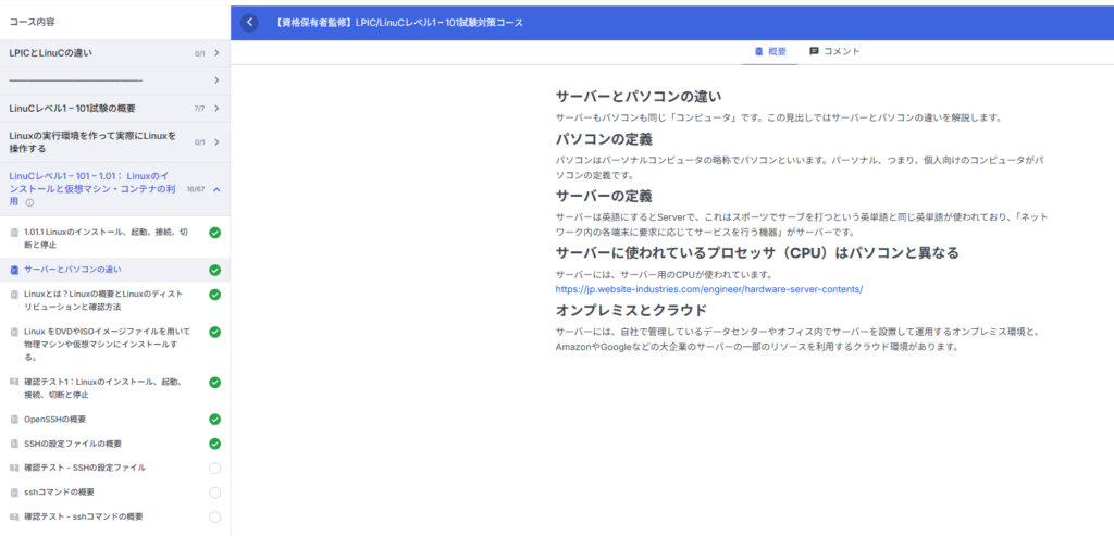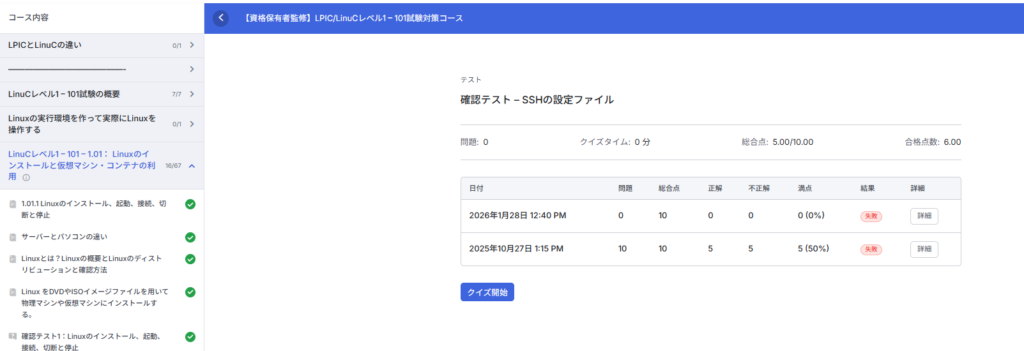 私は、以下のLPIC/LinuCレベル1の対策コースを開発、構築しました。