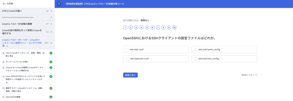 LPIC/LinuCレベル1の対策コースは以下のリンクからご購入可能です。