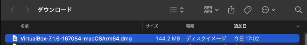 ダウンロードした.dmgファイルをダブルクリックします。