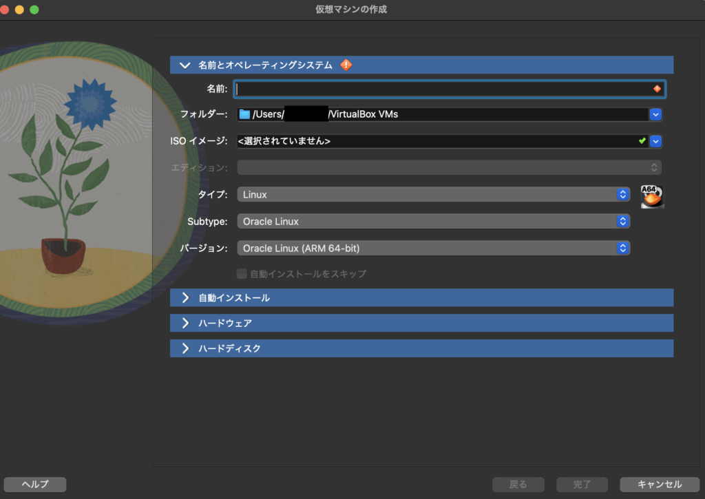 - ダウンロードしたisoファイルがaarch64と名前がついていること、このisoではない場合はCPUのアーキテクチャの問題でうまく仮想マシンが起動できない