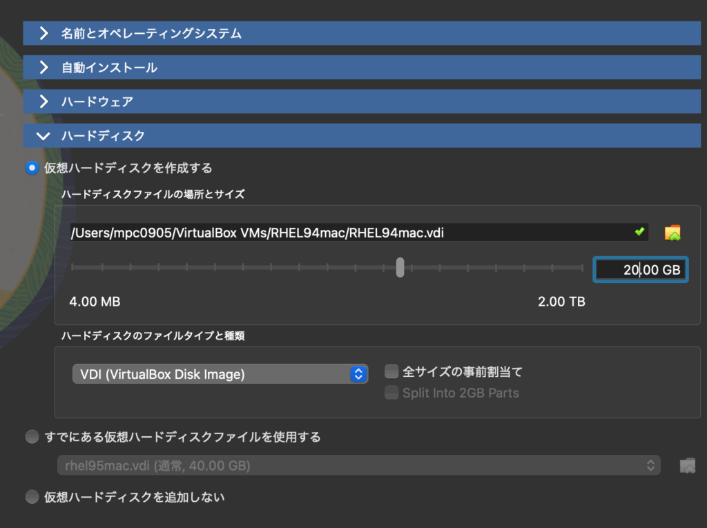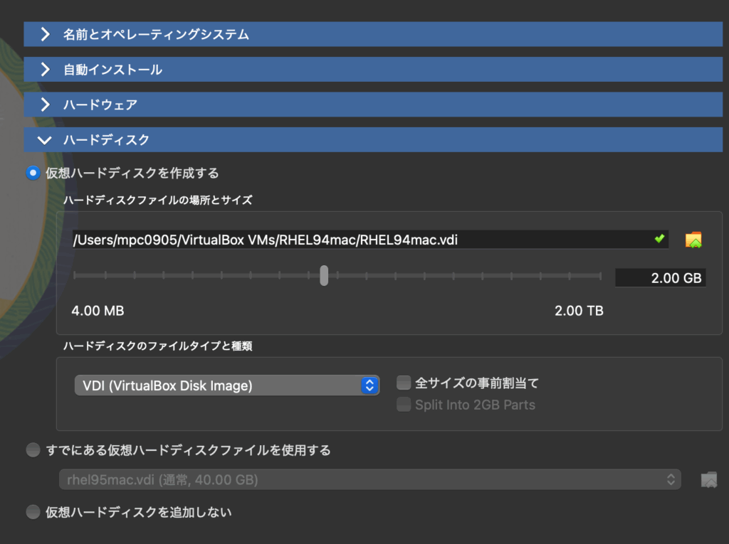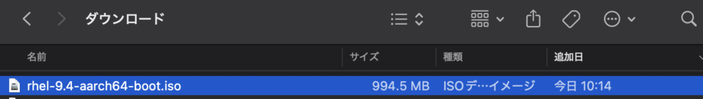 今回はRed Hat Enterprise Linux 9.4をMacのバーチャルボックスにインストールします。