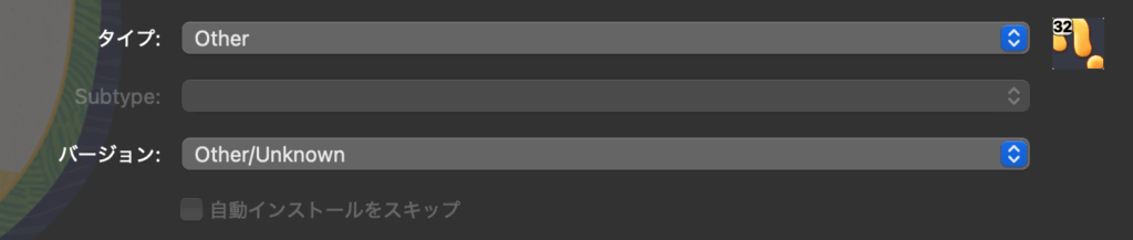 タイプとバージョンを変更します。