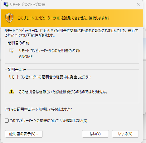 RHEL10.0から、Windows Server と同じくポート番号3389でリモートデスクトップ接続が可能です。この記事では、RHEL10.0に対してWindows 11 Proからリモートデスクトップ接続をしてみた作業証跡をまとめました。
