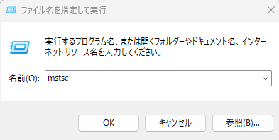 WindowsキーとRキーを同時に押して「mstsc」と入力します。