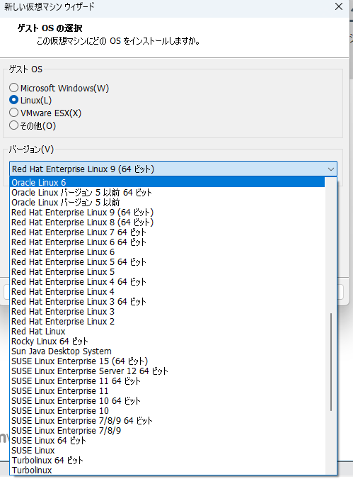 またRHEL10は選べないのでRHEL9を選択します。