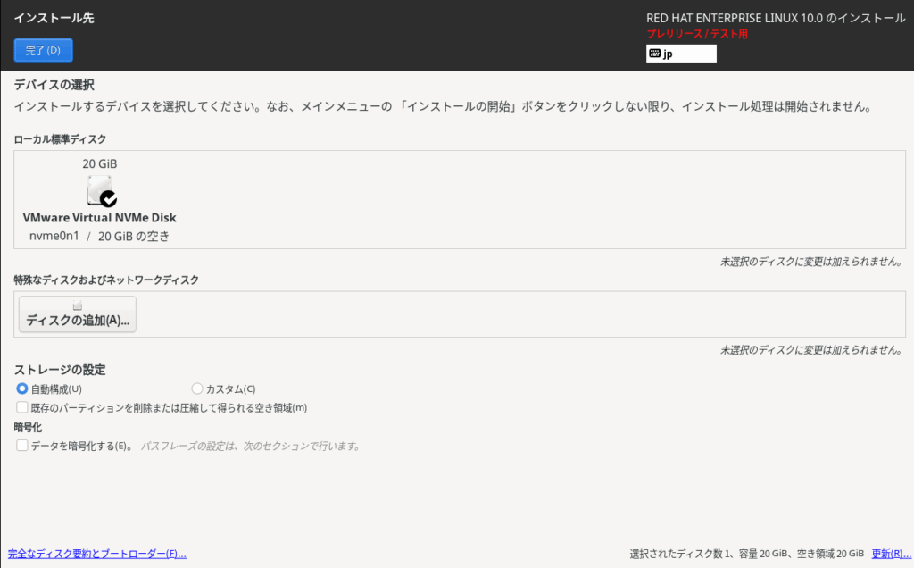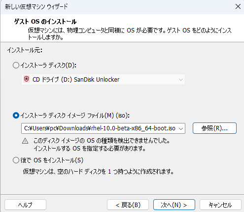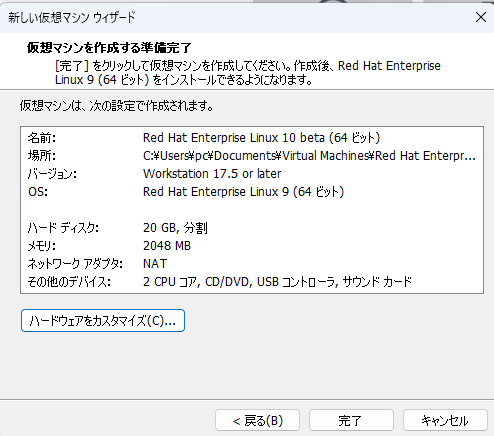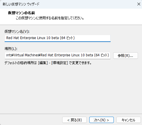 VM wareworkstationにRHEL10 betaをインストール