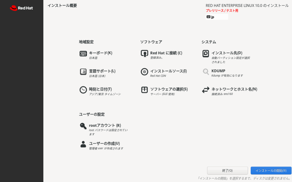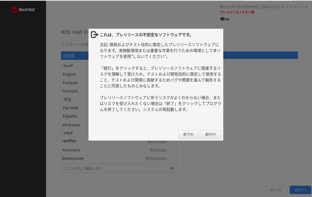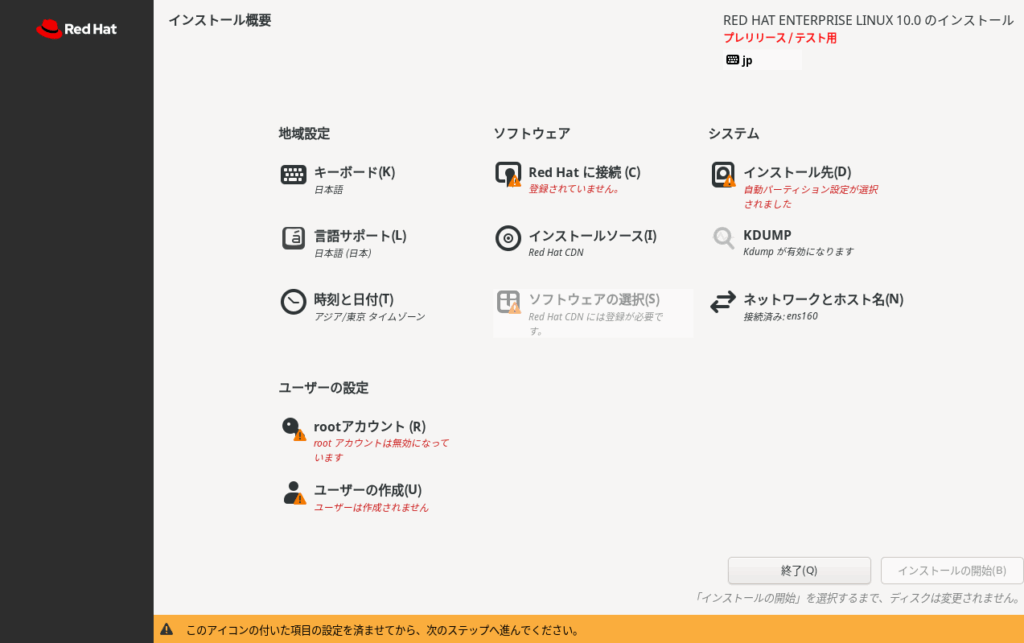 RHEL10 betaをダウンロードしてVM wareworkstationにインストールする