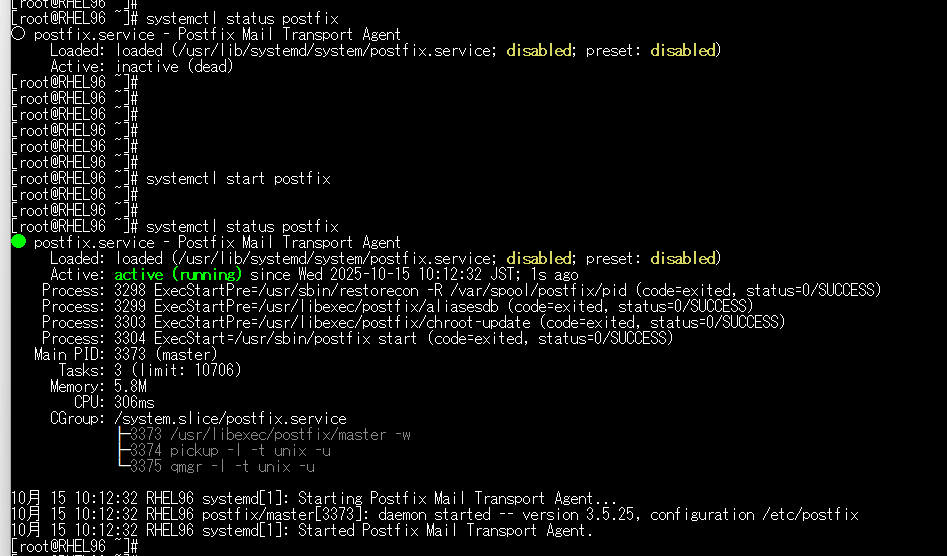 [root@RHEL96 ~]# systemctl status postfix