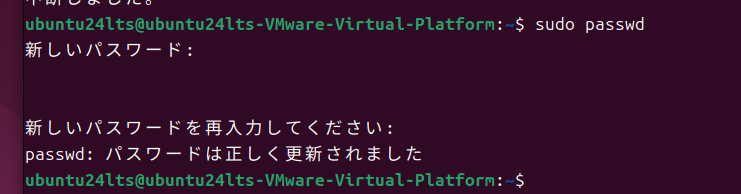 一般ユーザーがrootユーザーのパスワードを変更するには、このコマンドをsudoコマンドで実行させます。