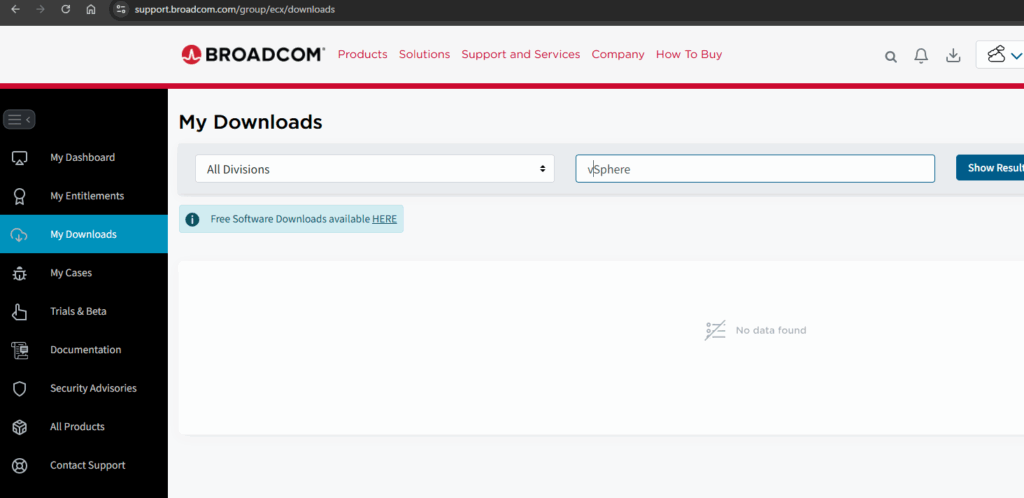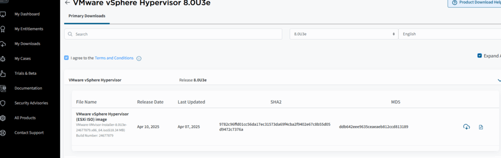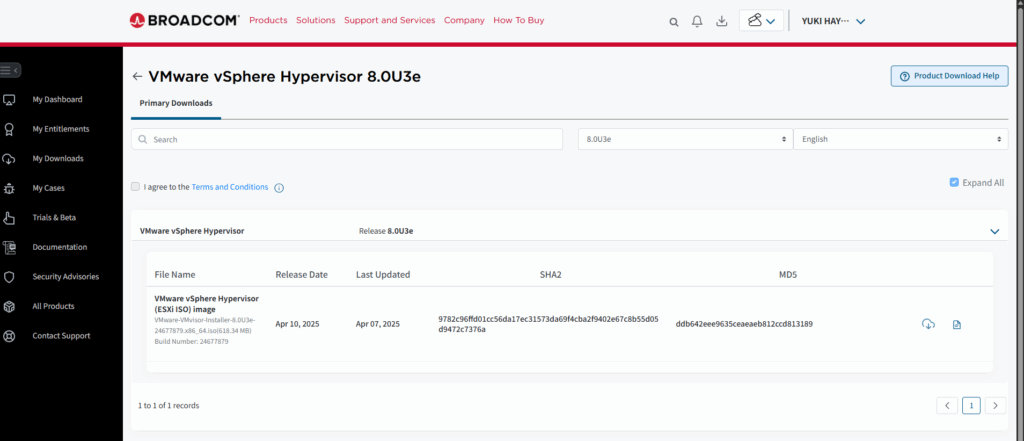 まずはESXiをインストールするためのisoファイルをBroadcom公式サイトから入手します。