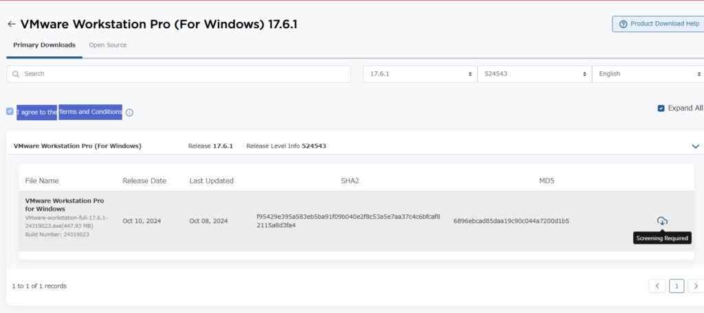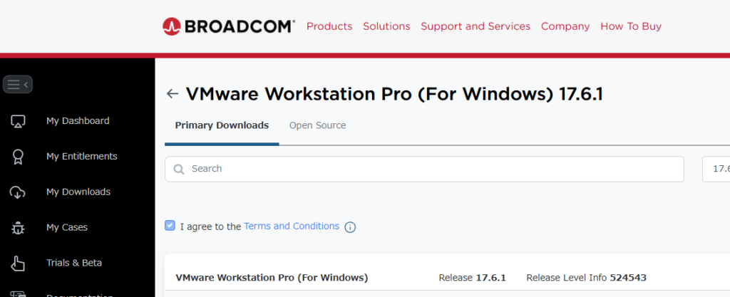 Broadcomにサインインしたら、VMware workstationのインストーラを以下からダウンロードします。