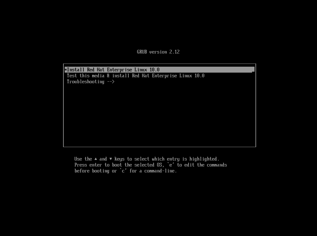 インストール画面に黒い画面が表示されます。 テキストのみのキックスタートインストールには 3D グラフィックのサポートが必要です。 VMware ESXi に RHEL 10 ベータ ISO をインストールすると黒い画面でハングします。