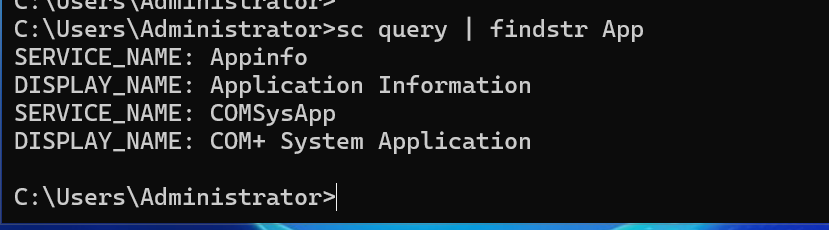 以下のようにfindstrも同時に実行することでサービス名を検索できます。