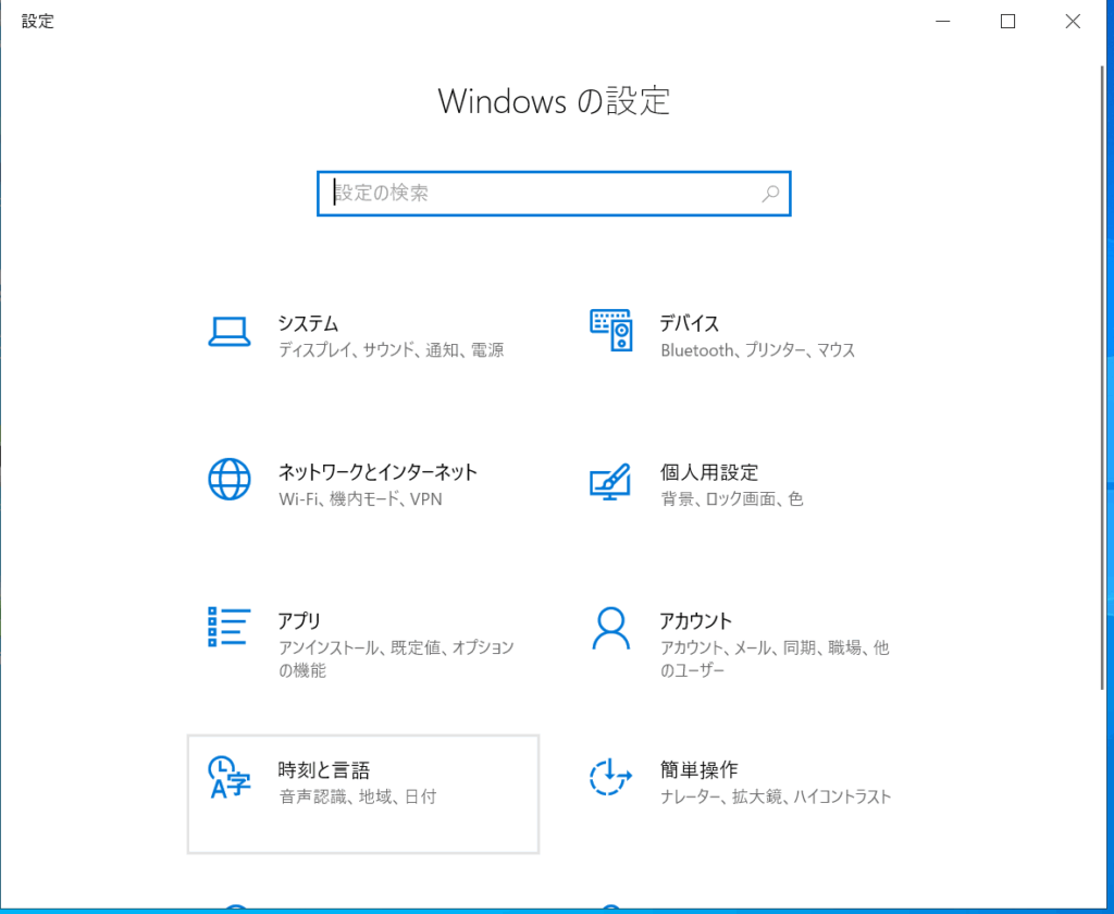 次に設定ウィンドウの時刻と言語をクリックします。