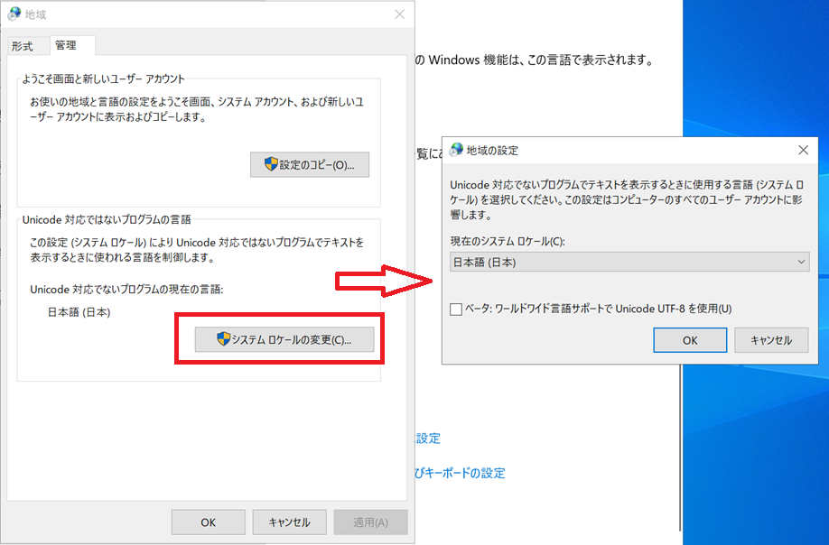 Windowsの文字コード(ロケール)を変更する