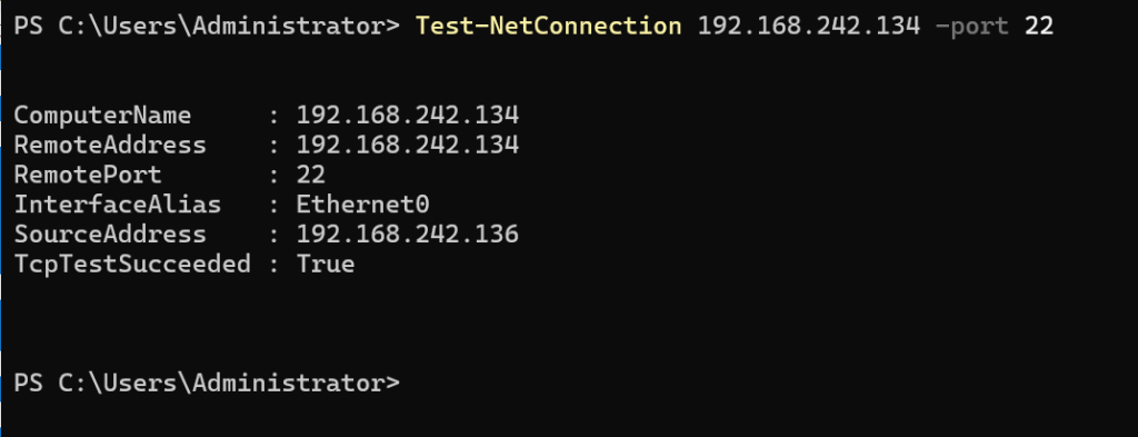 Test-NetConnection <対象サーバーのIPアドレスもしくはホスト名> -port 22