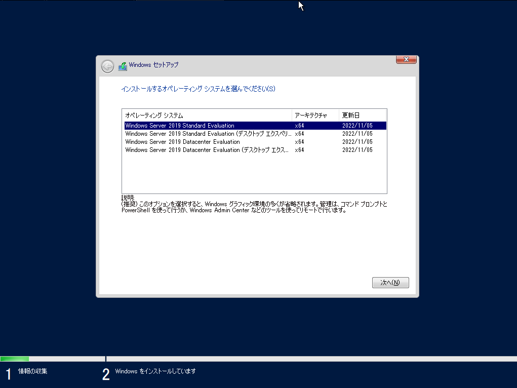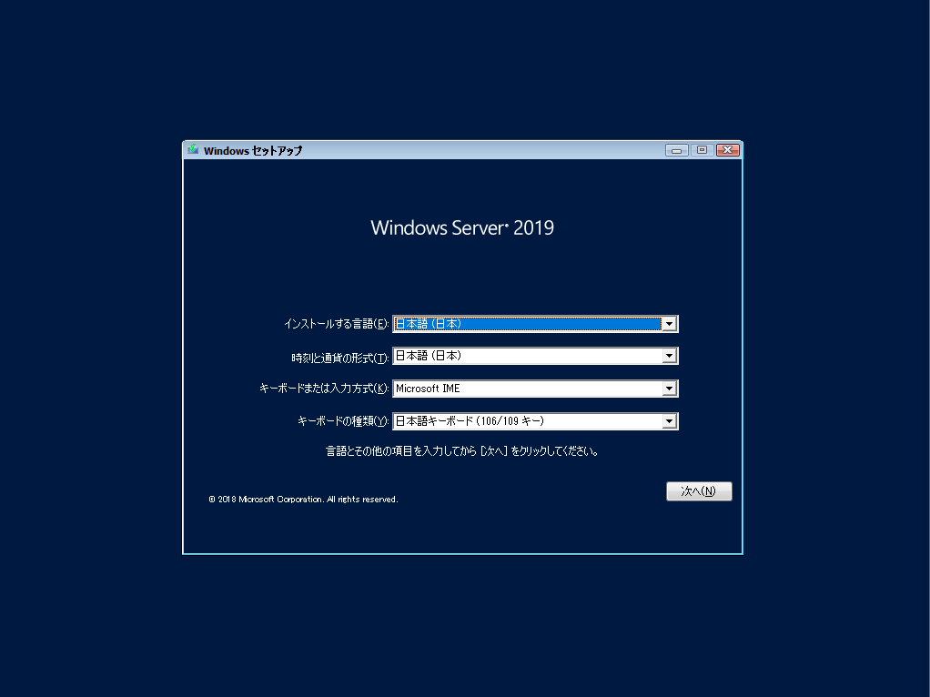 Windows Server 2019をインストールする