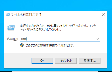 WindowsキーとRキーを同時に押してcmdと入力してエンターキーを押下するとコマンドプロンプトを立ち上げることができます。