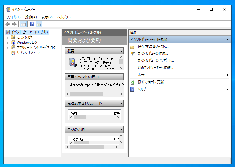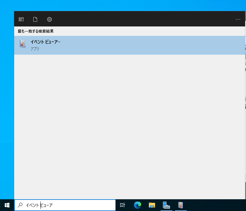 左下の検索ボックスからイベントビューアと入力してもイベントビューアを開くことができます。