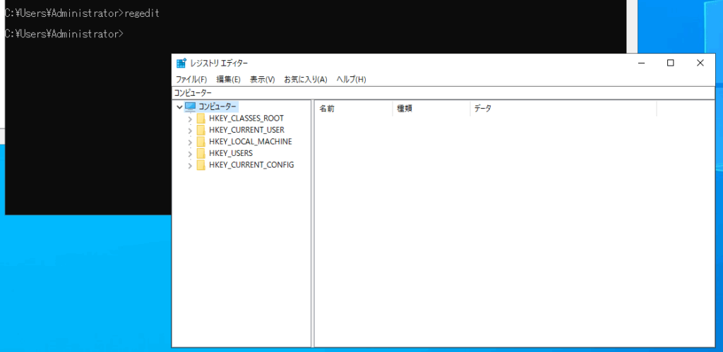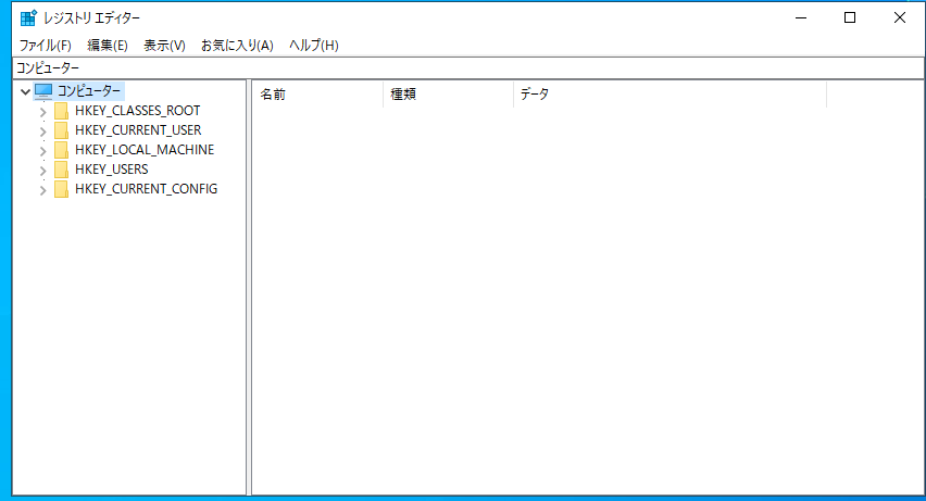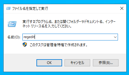 レジストリキーは以下のコマンドで調整する画面(レジストリエディタ)を開くことができます。