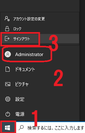 セッションを切断する場合は左下のWindowsアイコンをクリックしてその次にユーザー、サインアウトとクリックしてサインアウトするとセッションを切断できます。