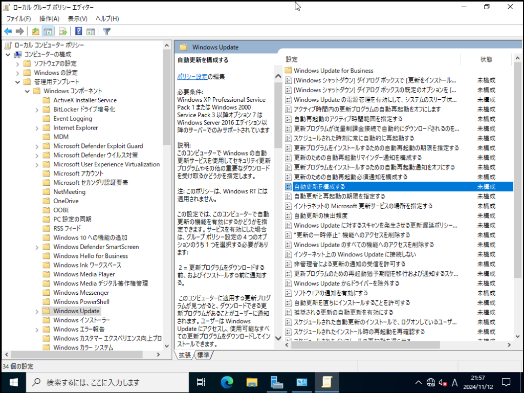 Windows Server 2022でWindows Updateを抑止するにはグループポリシーを利用します。