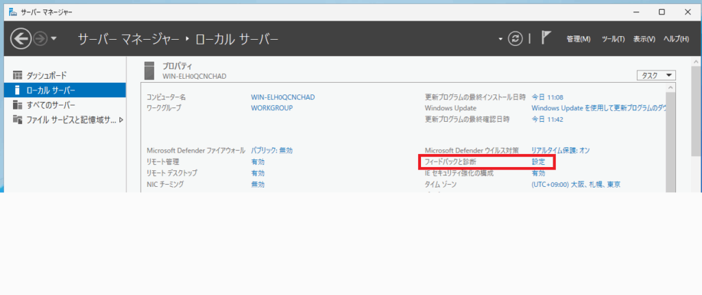 Windows Server 2025ではインストール時のデフォルトで「診断とフィードバック」が送信されないように設定されています。