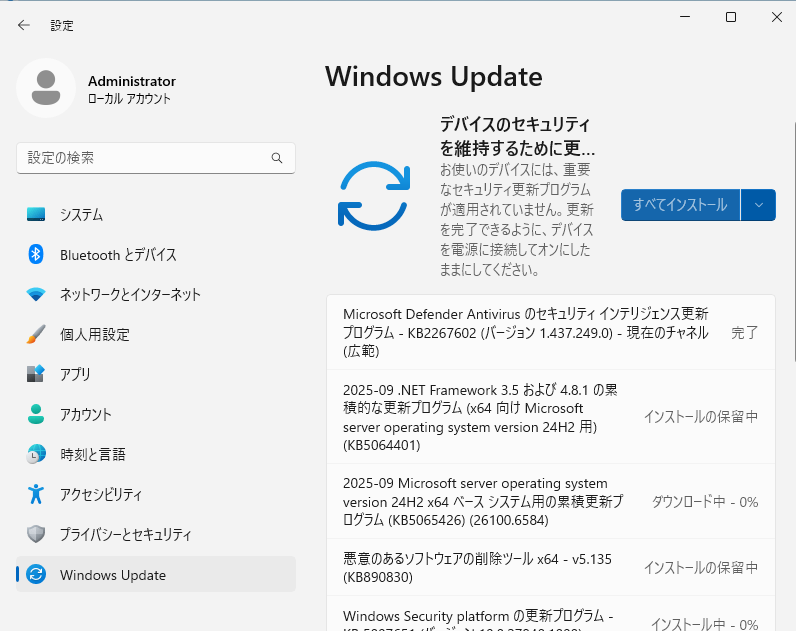 特定のKB番号のプログラムをWindows Server 2025に適用します。