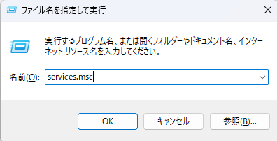 WindowsキーとRキーを押して以下を実行します。※serviceではなく複数形のservicesです。