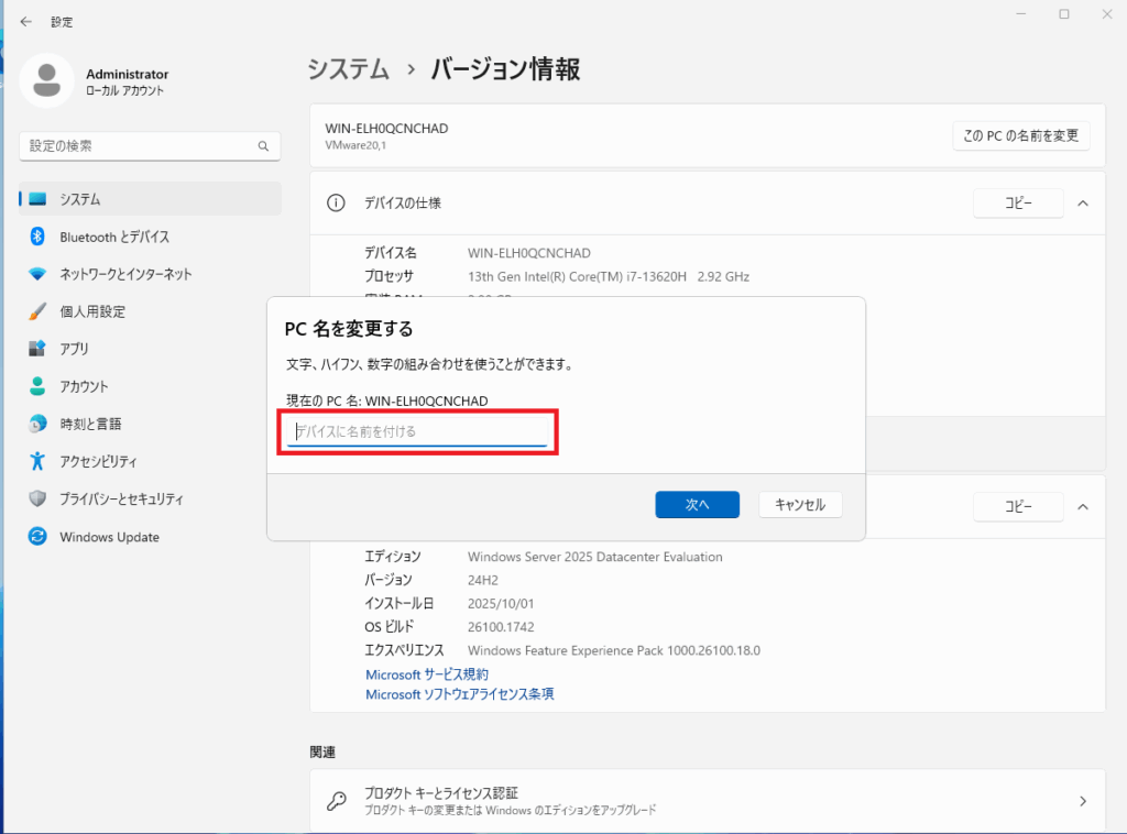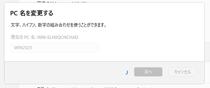 ホスト名(Windows Serverのコンピュータ名)を変更する
