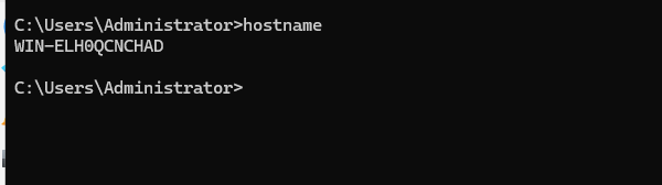 Powershellでhostnameコマンドを実行してみると、再起動するまで変更前のホスト名が出力されます。