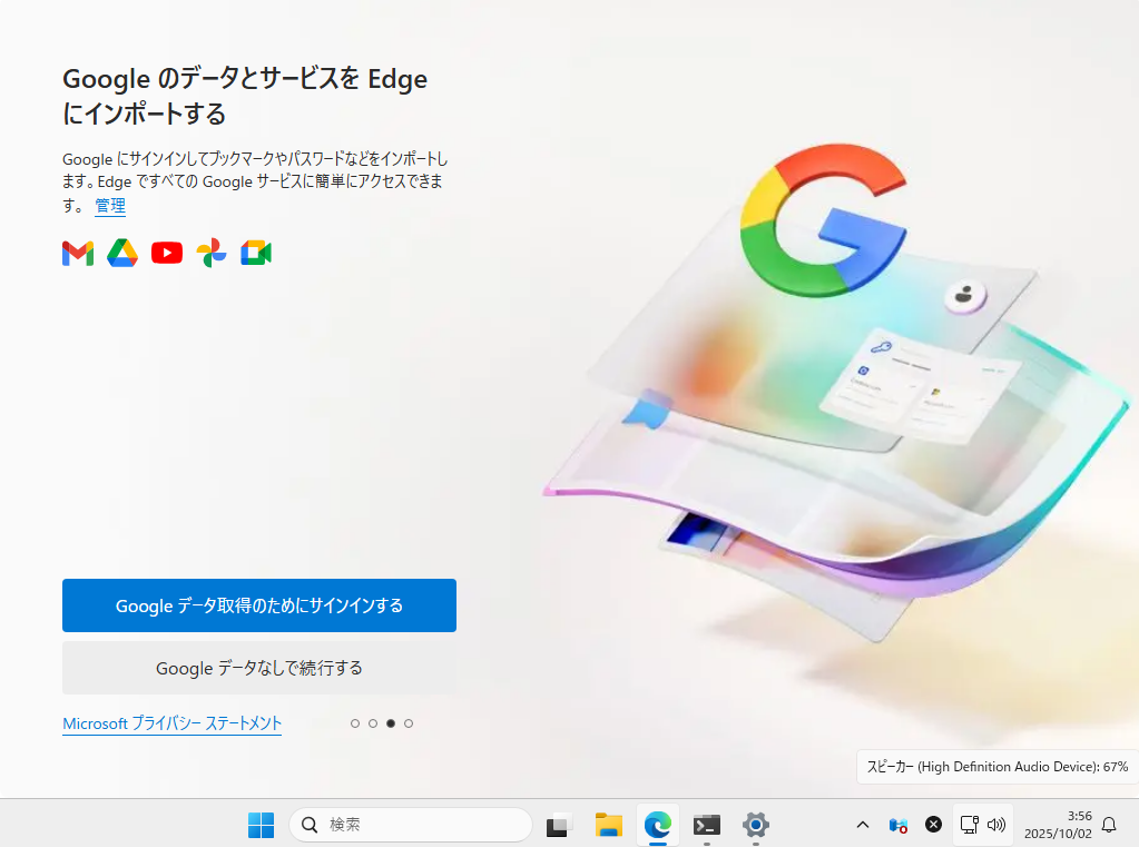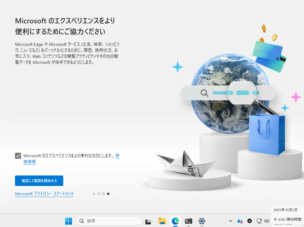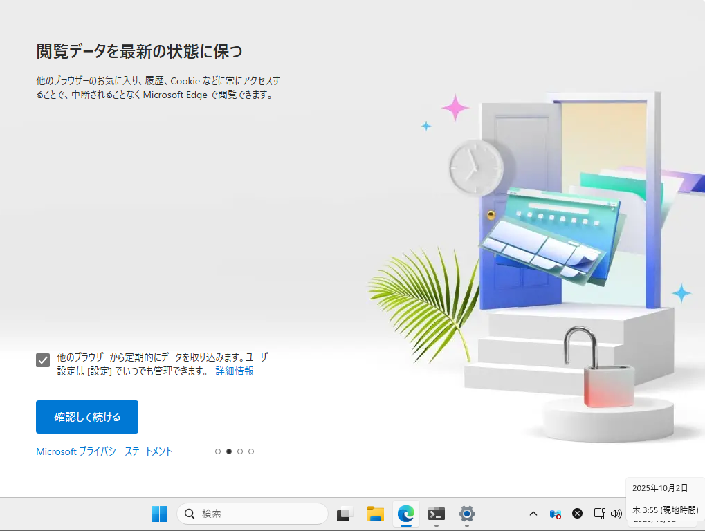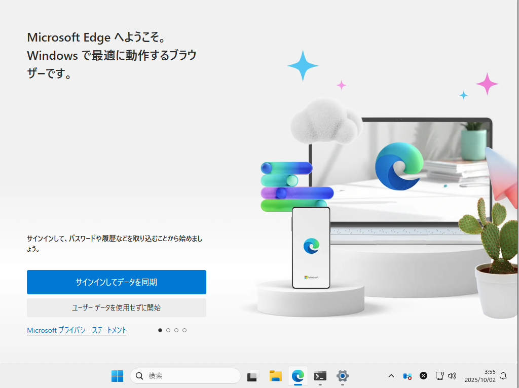 Microsoft公式のWEBブラウザ、Edgeの起動時の設定をしておきます。